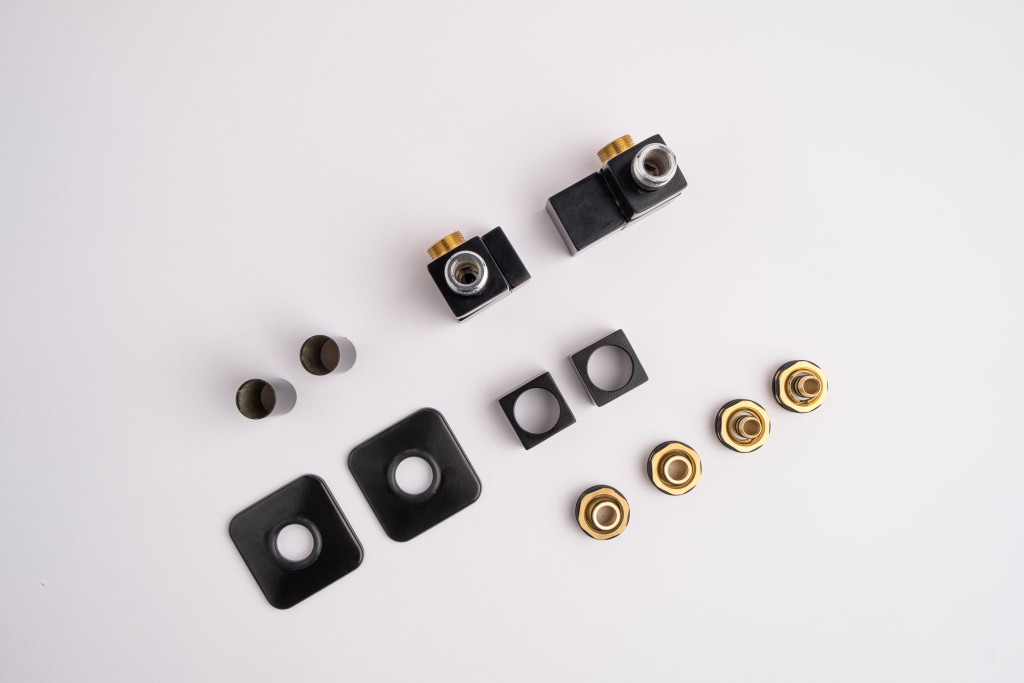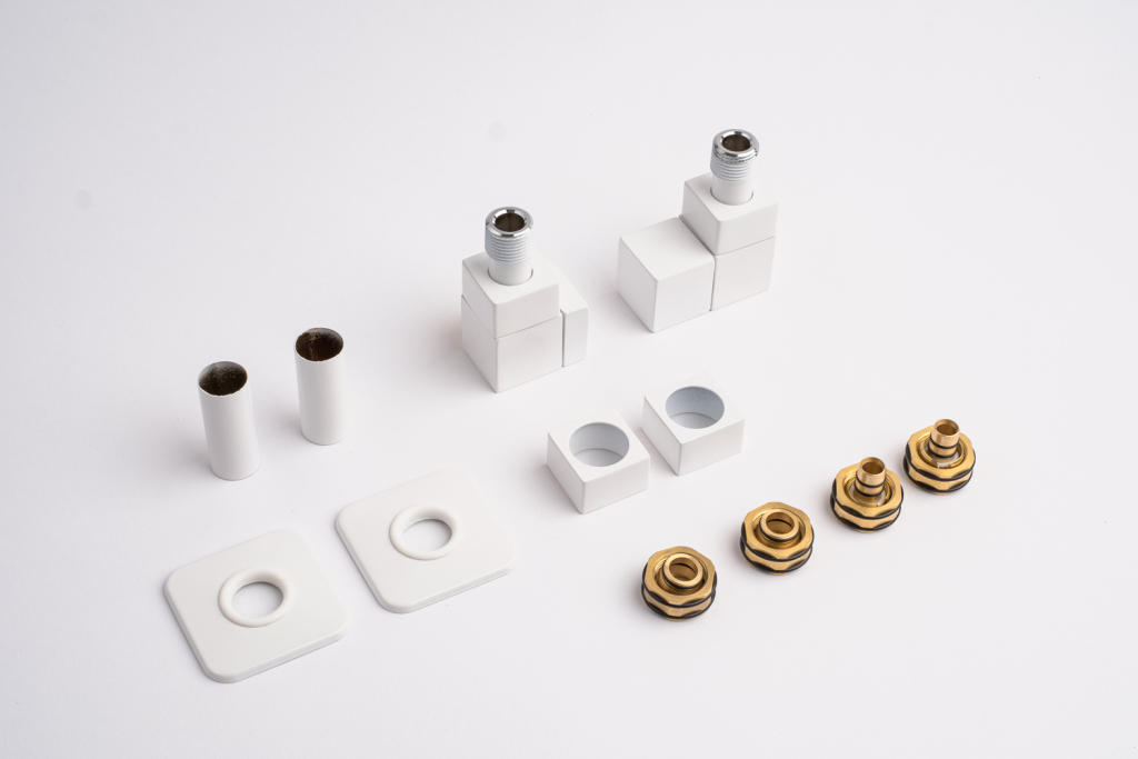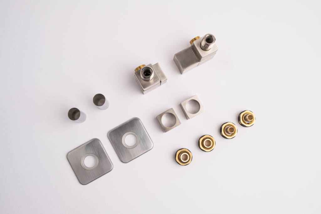 Kompletní sada kromě samotného ventilu obsahuje také krycí rozety a svěrné šroubení pro připojení na měď  15 mm a Alupex 16 mm.
