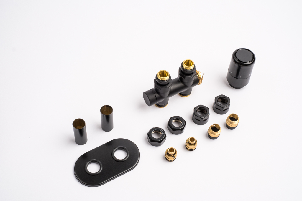 Kompletní sada obsahuje kromě ventilu také krycí rozety a svěrné šroubení pro připojení na měděné potrubí 15 mm a Alupex 16 mm.
