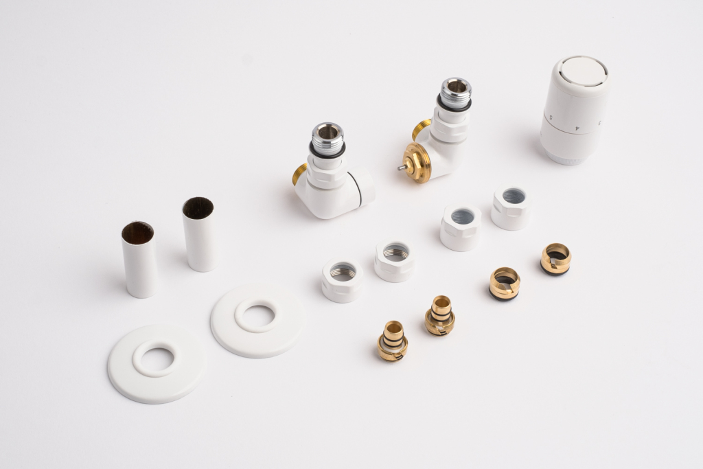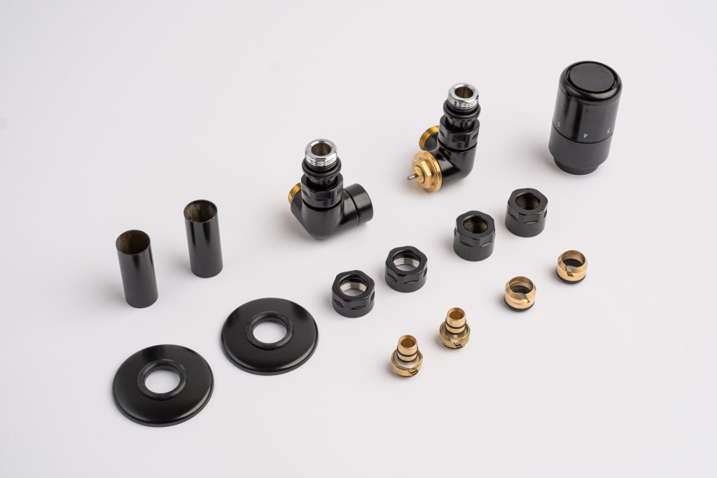 Kompletná sada okrem ventilu obsahuje aj krycie rozety a svorné šróbenie na pripojenie na meď 15 mm a Alupex 16 mm.